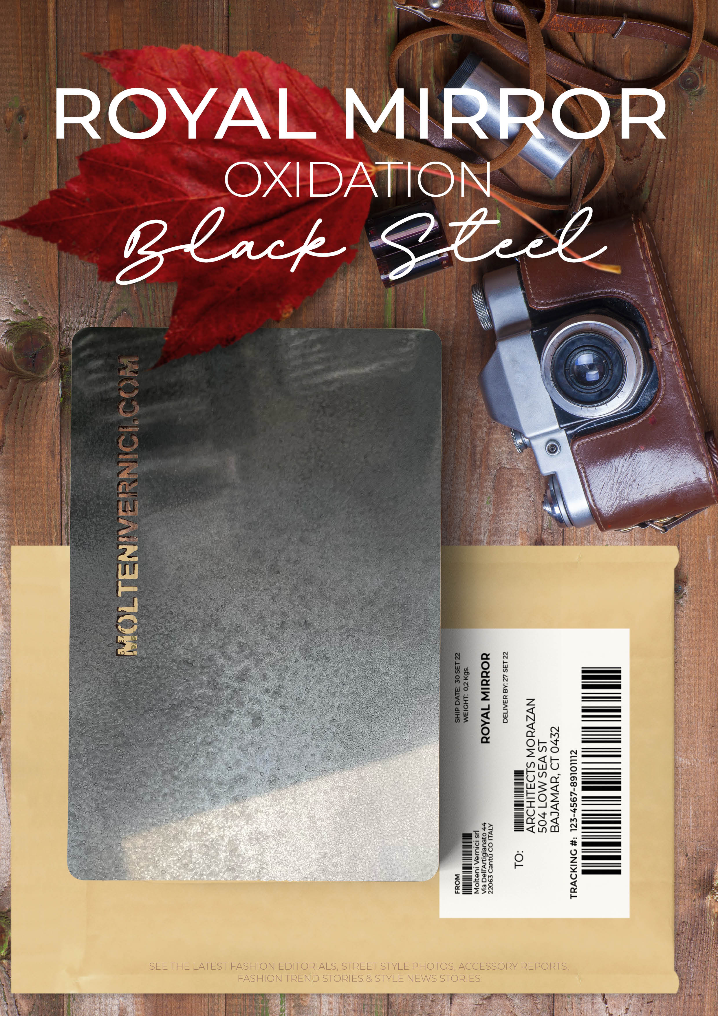 ROYAL MIRROR Vintage Aynalı Fırçalanmış Paslanmaz Çelik Efektli boya, ayna cilalı metalin aynalı yüzeyini opaklaştırmama avantajıyla paslanmaz çelik parlatma ve bronzlaştırma işlemlerini taklit eden 2k iki bileşenli bir döngüdür.
